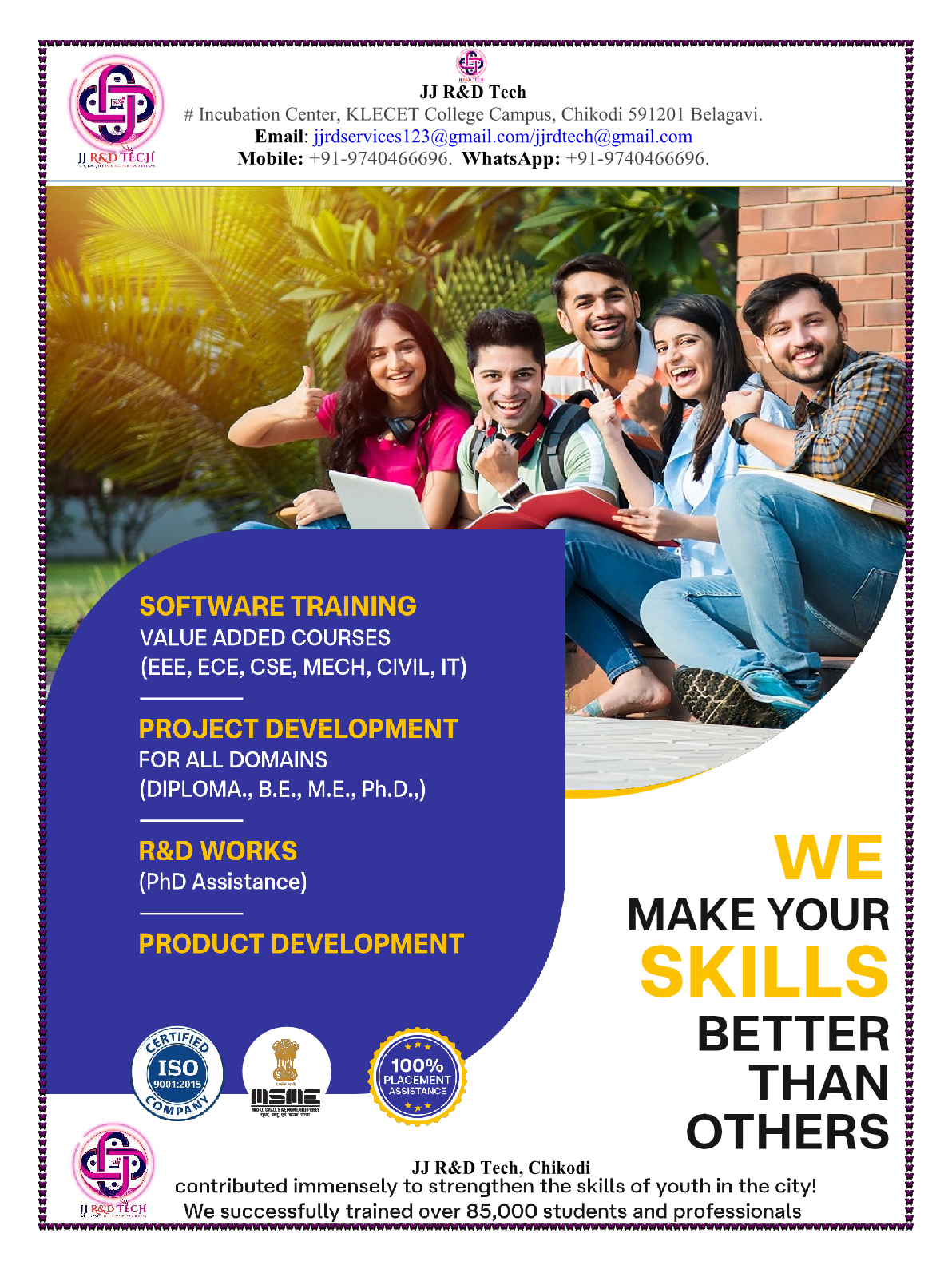 * WELCOME TO THE WORLD OF JJ R & D TECH : ALL KIND OF SOFTWARE DEVELOPEMENTS & TRAININGS AVAILABLE * INDUSTRIAL BASED REAL TIME PROJECTS -> CONTACT NO-9740466696 -