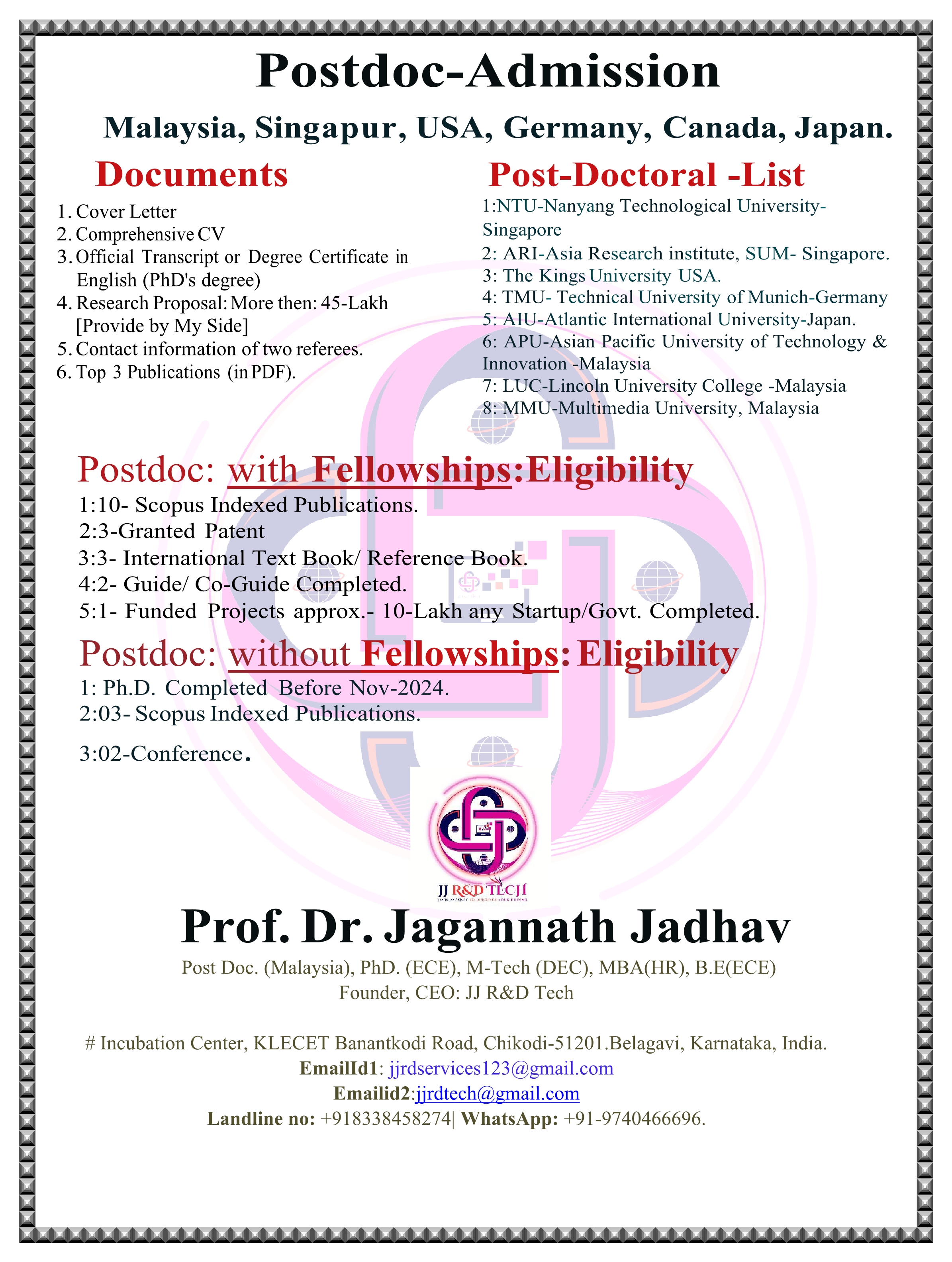 JJRDTECH is a group of professionals who are engaged in delivering end-to-end research consultation services. We are based at Belagavi, Karnataka, India and here is a brief on what all we support